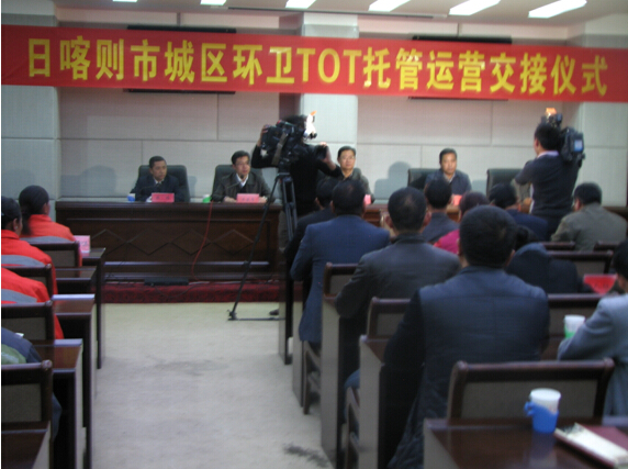 日喀则市桑珠次仁市长各级领导与公司董事长总经理陈鸿先生等,出席了签约及交接仪式,在仪式上,双方签订了《西藏自治区日喀则市城市生活垃圾处理项目TOT托管运营协议书》。此次托管,为期3年,包括日喀则市城区道路保洁、生活垃圾收集、清运、填埋、环卫设施清洁、公厕管理、下水道清理及疏通等工作内容。