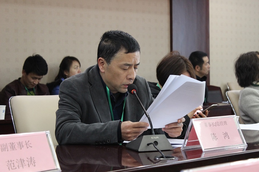(图为董事长兼总经理陈鸿作董事会工作报告)