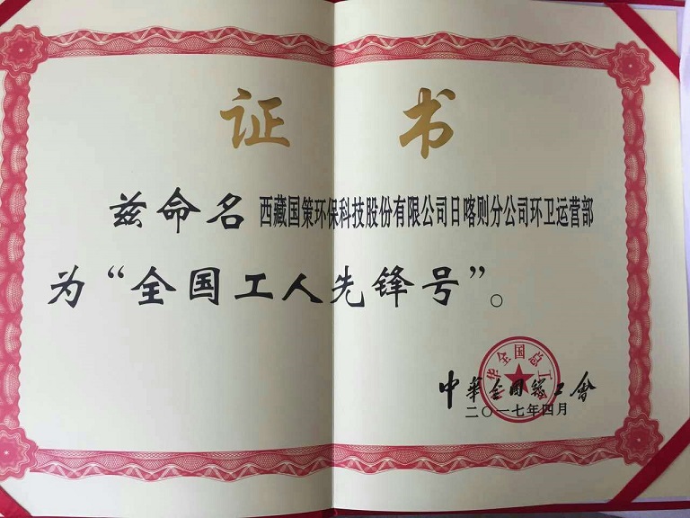 日前,全国总工会召开“五一”milan米兰官网发布会, 通报了一批“2017年全国工人先锋号”。西藏milan米兰官网科技股份有限公司日喀则分公司运营部全体成员在日常工作中劳心劳力、风雨无阻、践行无私奉献的城市“美容师”精神,被授予“2017年全国工人先锋号”,是我司首获此殊荣。