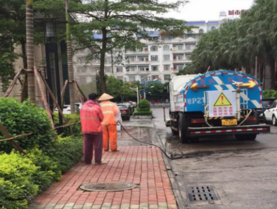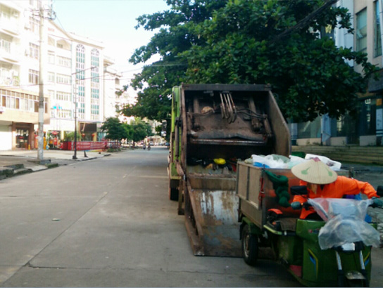 针对东兴市国门城市的特点,公司采用机械作业与人工作业相结合的模式。人工作业方面,城区每天早上8点钟前,环卫工人完成大扫,轮班保洁,直到晚上11点钟。机械作业方面,公司采用高压清洗车对东兴市城西区域路段进行清洗作业,采用小扫路车对市区小街巷进行清洗作业,全天候人工与电动三轮车巡回保洁,管理人员用电瓶车进行巡检督查。垃圾清运则采用压缩式收集车巡回收集城区各路段垃圾,采用5台勾臂车对城西各区域100多个垃圾箱中垃圾进行转运,垃圾压缩车对全城的垃圾桶中垃圾进行循环收集,保证全城垃圾不落地。新型模式下的环卫作业有效地提升了东兴市国门城市形象及环卫作业管理水平,受到业主单位及主管单位好评。