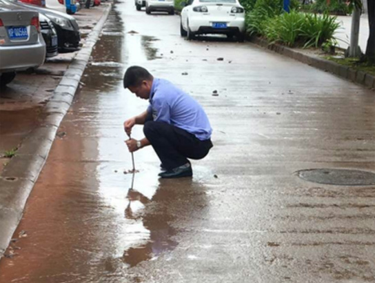 ▲公司管理人员能动性强协助环卫工人清理堵塞下水道