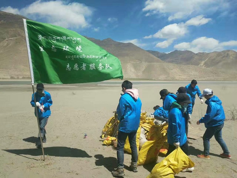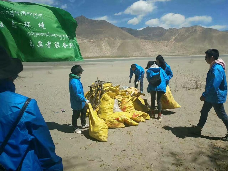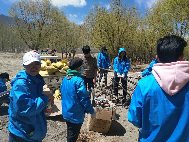 山南市团委组织青年志愿者前往雅砻藏布江河畔清理河床垃圾——milan米兰官网山南分公司协助垃圾清运并处理。