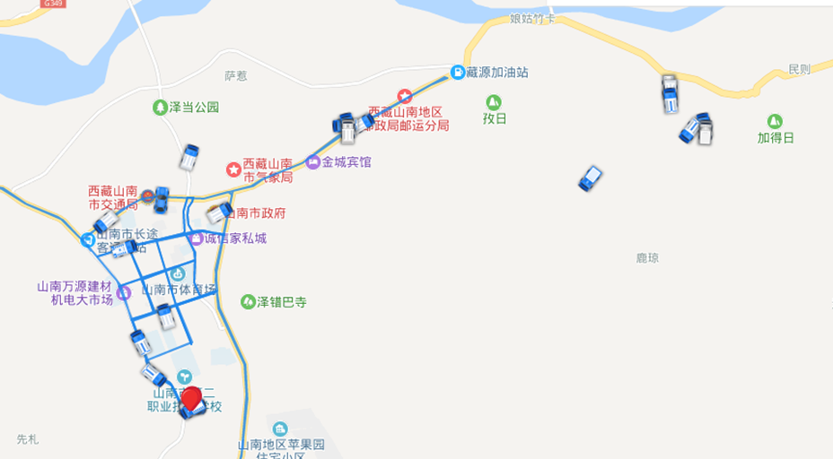 图为山南市milan米兰官网环保系统中车辆作业路线概况