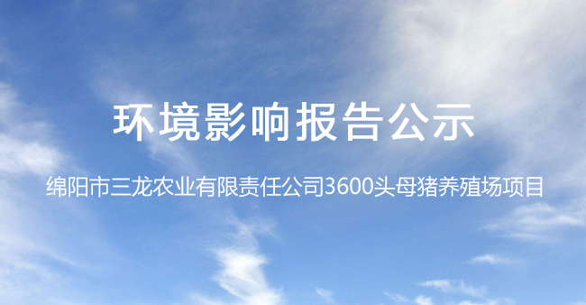 绵阳市三龙农业有限责任公司3600头母猪养殖场项目 环境影响报告书全文信息公示
