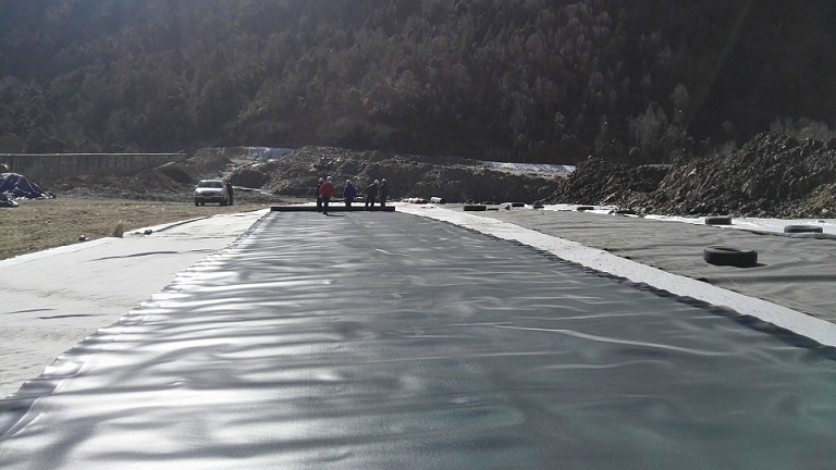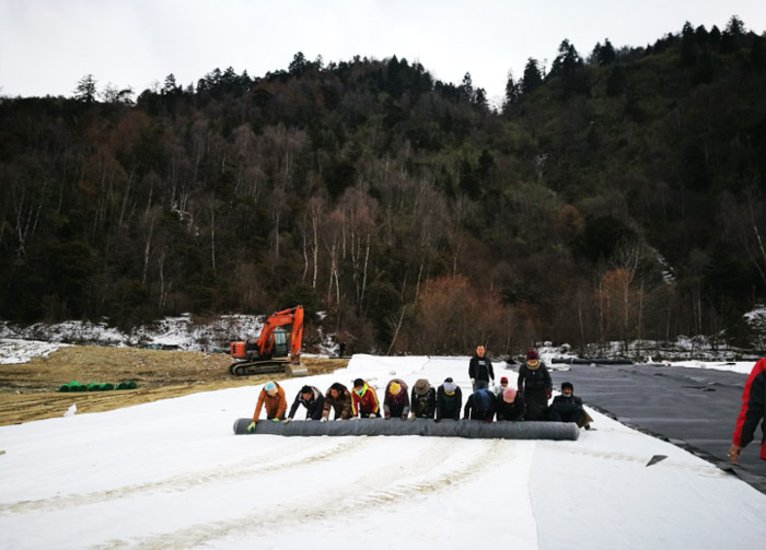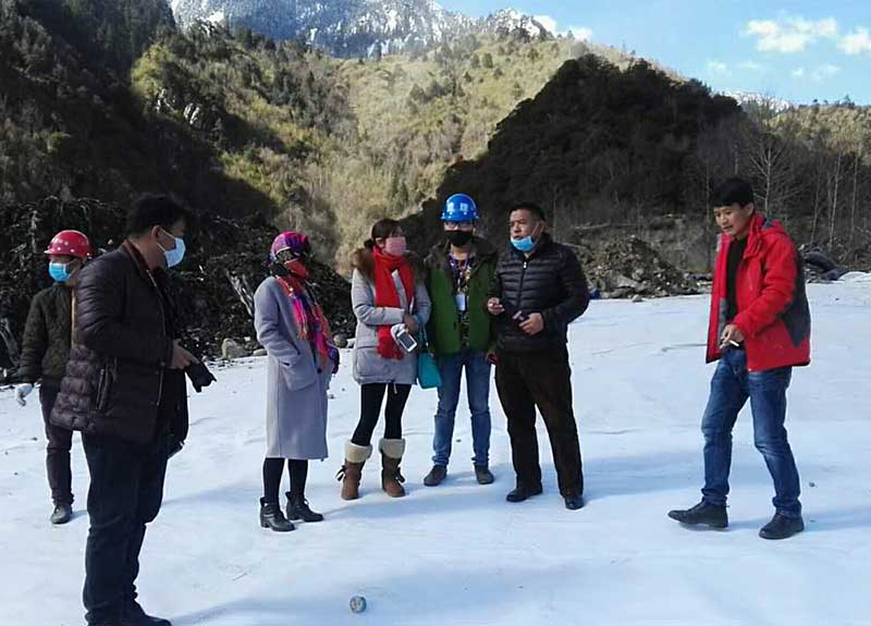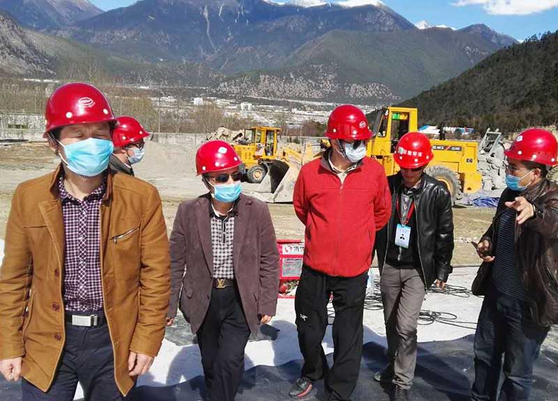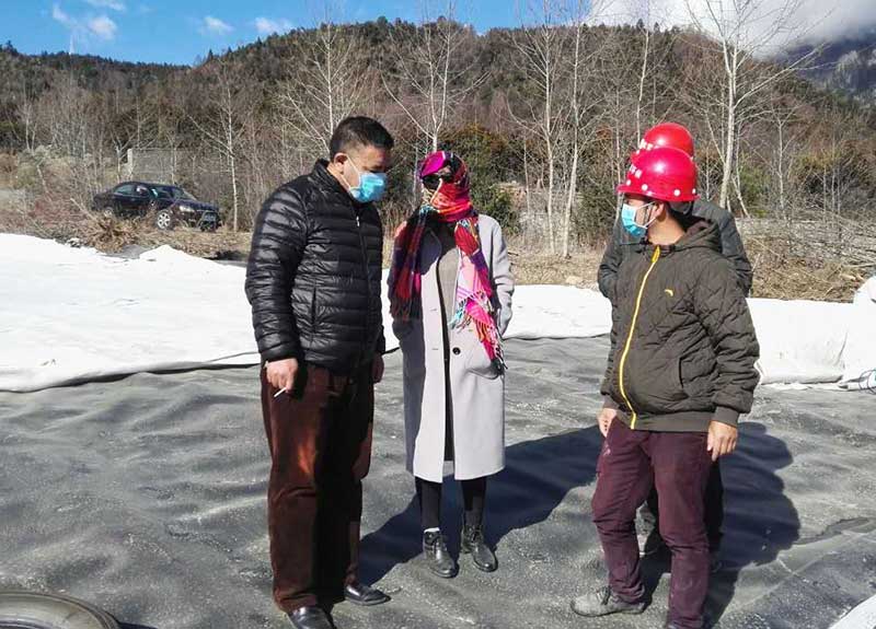 林芝市市政局副局长亚宏来工地查看土工膜铺设焊接