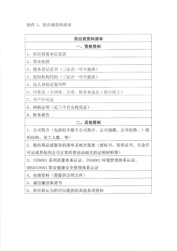 1、拟入库供应商须根据公司要求提供相关资料,相关资料经公司审核后方可入库。