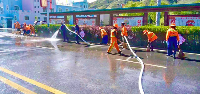 同时,根据各道路实际情况,贡嘎项目部在不影响市民的正常出行,避免对交通造成影响的同时,创新清扫作业模式,增加洒水次数和区域,提高道路保洁作业频次,提高保洁质量,做到“二到边”,日常保洁到墙边,洒水冲洗到路边。