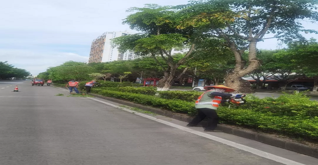 2、安排修剪人员对兴东路、民族路、新华路、长湖路、东盟大道、友好大道、北仑大道、高兴大道、滨海大道、竹山进港大道等绿化面积进行修剪,统一修枝整形,出动650人次、修剪绿化带25条,清运78车次,共修剪约14万平方米。