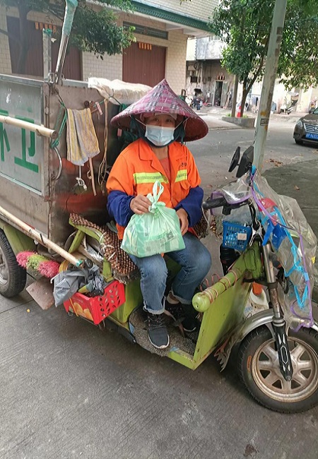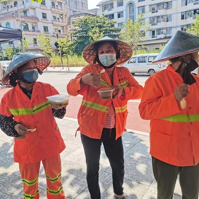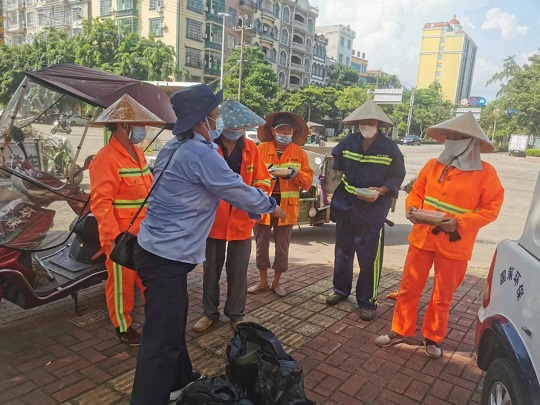 随后,工作人员向现场520余名环卫工人及园林工人挨个发放了藿香正气水、风油精、广东凉茶颗粒、复方板蓝根颗粒等防暑降温用品。国策一线环卫工人们接到派发的消暑用品时纷纷露出了开心的笑容:“大热天有公司发放的消暑用品,解暑清凉,很开心。”