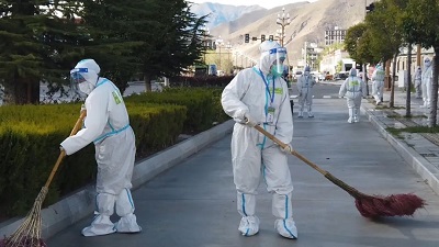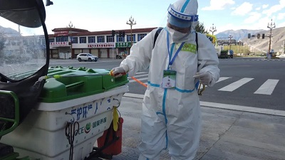环卫工人米玛感慨道:“我们的任务要比以前重很多,工作量也加大了很多,虽然很累,但我们心里还是很愿意、很开心的,因为我们在为了全市打赢这场疫情防控阻击战而贡献力量。”