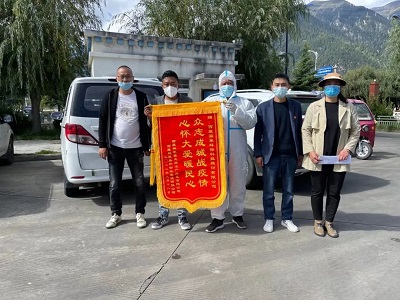 近期,milan米兰官网林芝分公司连续收到多面锦旗,表达了人民群众对milan米兰官网林芝分公司在疫情面前不畏危险、冲锋在前的诚挚感谢。9月12日,林芝市生态环境局巴宜区分局相关工作人员来到milan米兰官网林芝分公司,将一面印有“忠于职守 一心为民”的锦旗送到milan米兰官网林芝分公司负责人手中,感谢milan米兰官网林芝分公司在疫情防控工作上给予的大力支持和帮助。9月18日,西藏林芝嘉龙房地产开发有限公司、西藏林芝嘉和物业管理有限公司联合为milan米兰官网林芝分公司送来了印有“众志成城战疫情 心怀大爱暖人心”的锦旗。